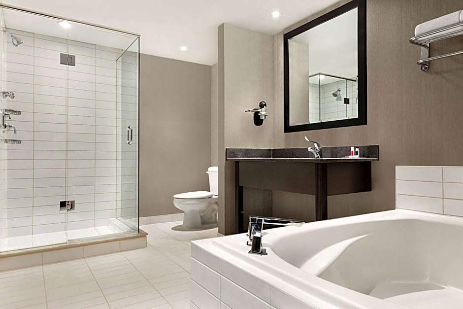 This two room suite offers free WiFi and two flat-screen TV's with cable channels. The living area features a queen size sofa bed, refrigerator, microwave and coffee maker and desk. The private bathroom contains a shower, a large tub and complimentary toiletries.