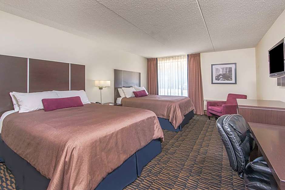 This accessible room contains bathroom rails, a raised toilet seat with grab bars, a roll-in shower and closed captions available on the TV. Additional amenities include free WiFi, a flat-screen TV, fridge, microwave and coffee maker.